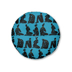 This round tufted floor pillow features silhouettes of black afrocentric women. Add a custom touch to your apartment, office, or home with this unique pillow design. The item has a white stitching in the middle and is shipped with its own filling. This cushion is as comfy as it is stylish and ready to use for tv watching, video games, or just comfortable lounging. The material is 100% polyester inside and out with a sewn seam closure, and double-side print. Our floor pillow comes in 2 sizes, so please review the available sizing chart for more details.