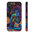 This phone case showcases a trippy graffiti style design of an afro woman. Inspired by out of this world and psychedelic things too, the cover's lightweight yet sturdy construction ensures optimum phone protection. The robust plastic exterior is reinforced by a shock-absorbing rubber liner/inside plate. The lay-flat bezel guards against minor scratches on the screen. Compatible with both wired and wireless charging, this high-quality case safeguards your phone from accidents. Need a different style or color? Message me with your preferences or specific phone model.