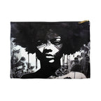 This small zipper bag features a close up image of an afro woman done in a graffiti style stencil against a floral backdrop. Inspired by black beauty, it's a pouch that comes in 2 sizes and can be used for pretty much anything. It makes an excellent pencil case or cosmetic bag for travel. Constructed of a durable material with a gold zipper closure, the fabric is 100% polyester and made to last. The bags also have a non-laminated black interior and flat corners. Easily customizable upon request--ask for a different color at no additional charge. Please check images for sizing chart. An excellent gift for black girls and women.
