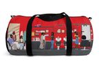 This duffel bag features a scene from a black beauty shop. It's available in 2 sizes, including 19x9.5x9.5 (small) and 23x12x12 (large) and should pass luggage carry-on tests if packed right! With added shoulder padding for long journeys, you can carry it in your hands or shoulders. Made of a soft nylon material with black removable and adjustable 1.5" wide straps, this oxford canvas is also tear resistant. Looking for extra storage? It comes with 1 main pocket, an internal zipper pocket, and an exterior mesh side pocket. Easily customizable upon request.