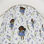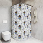 This shower curtain features a brown girl with wings and a blue flower petal dress. Created to turn any bathroom into a personal magical fairy haven, these custom curtains are a perfect one-sided canvas for power and pride. Made with 12-stitch enforced eyelets and a 100% polyester material, these bathroom decorations are built to last. Printed in full color 71" x 74" print for a vivid end result that stuns every time you look at it, this is the perfect home decor gift for us. Hooks not included.