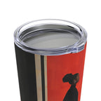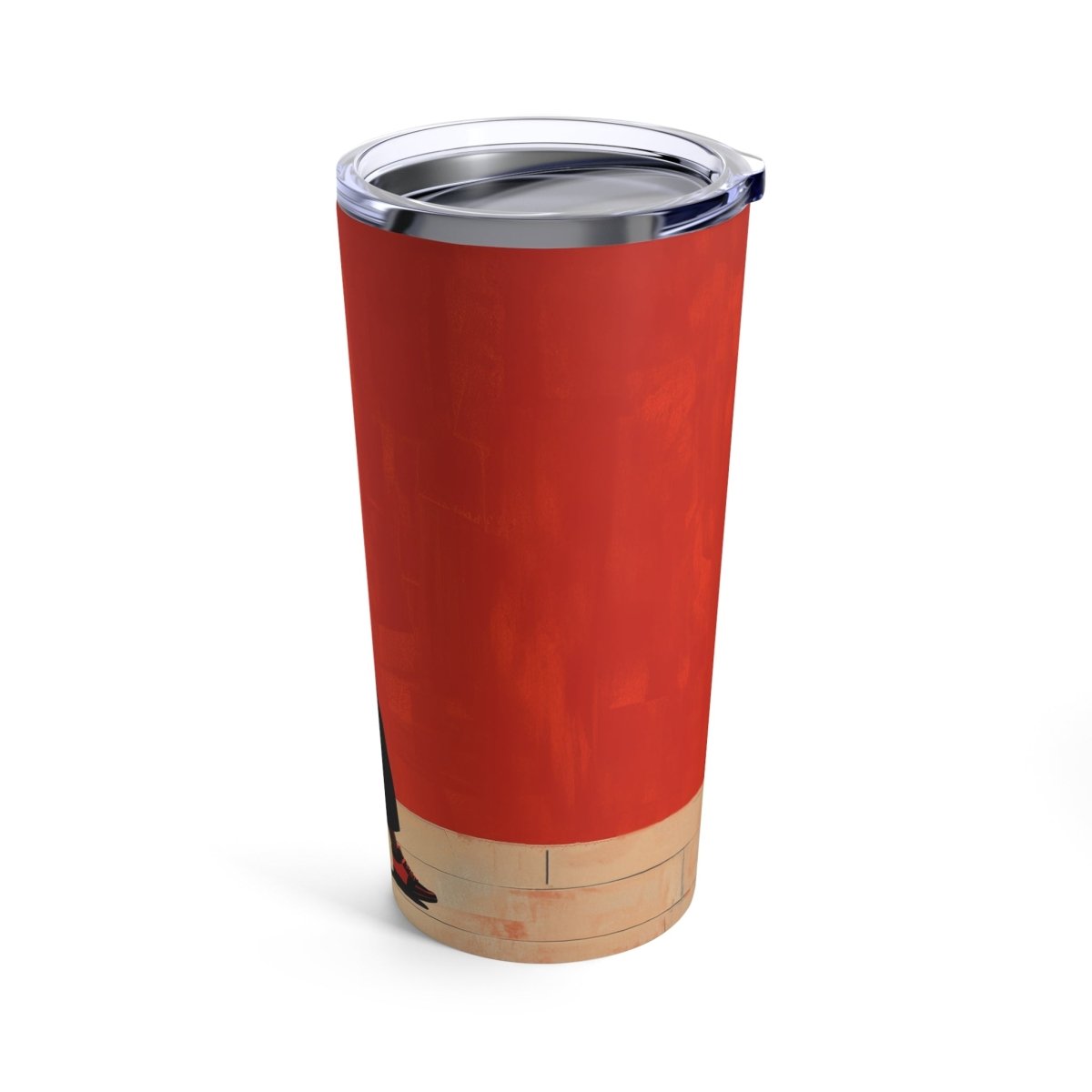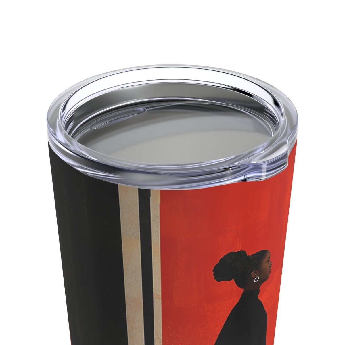 This 20oz tumbler features an afro woman dressed in all black, walking past a pillar and red backdrop. Created especially for black women on the go, this 20oz travel mug is vacuum-insulated and built to last. The see-thru plastic lid also allows you to see exactly what's inside. Expect your drinks to stay hot or cold for hours. For travel, school, or next to a laptop, it's a great gift for whoever you have in mind. Contact me directly about your custom requests.