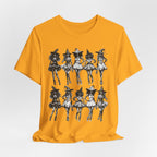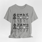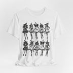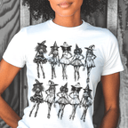 This adult unisex short sleeve tee features sketches of black witches. Inspired by melanin magic and the fall season, the shirt is crafted with soft cotton and a quality print. This tee will become your well-loved fall favorite. It's a great top to celebrate the spirit of Halloween, but the design is classic enough to wear year round as well. Its ribbed knit collars, taping on the shoulders, and dual side seams ensure a better fit over time and maintain the garment's shape. Made with 100% cotton, this tee offers a comfortable retail fit and light fabric weighing 4.2 oz/yd² (142 g/m²). With its tear away label and true-to-size fit, our witchy tee is perfect for those who want style, comfort, and a magical design. Available in sizes XS-3XL. Easily customizable upon request.